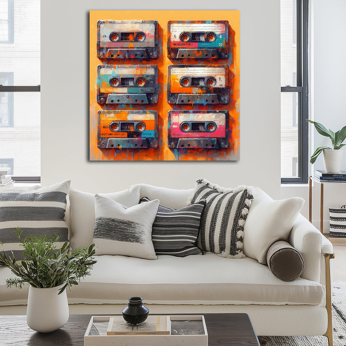 Cassetten Orange 70er - 45 x 45 cm / Leinwand
